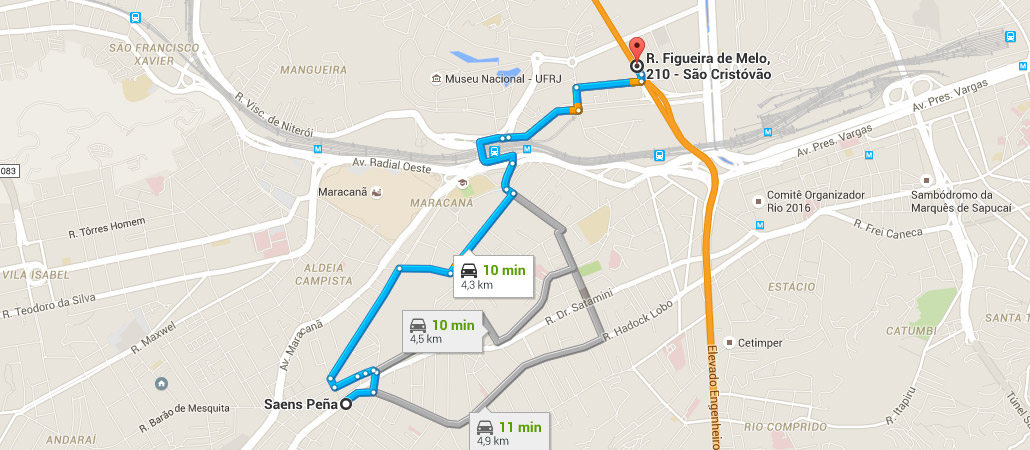 – Continue até o Viaduto São Sebastião e vire à direita na rampa de acesso à Tijuca;