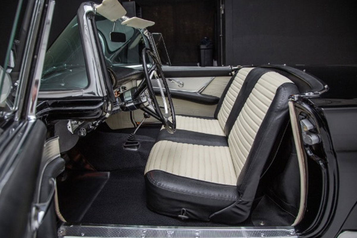 O sistema Dial-O-Matic representava o auge da sofisticação automotiva em 1957. Esse banco elétrico permitia ajustes motorizados de posição e altura, com um diferencial impressionante: memória de posições programáveis através de um seletor numerado.